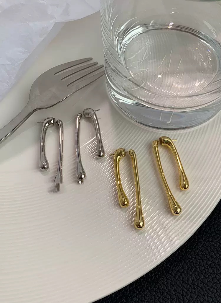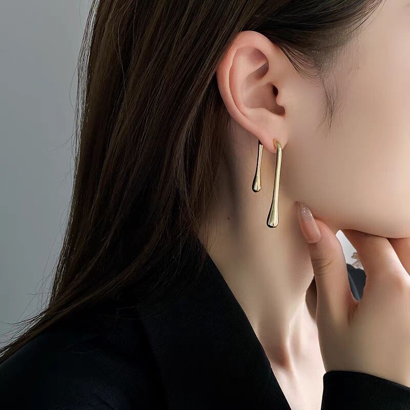 雙重戴法抗敏銀針水滴耳環 (金/銀)