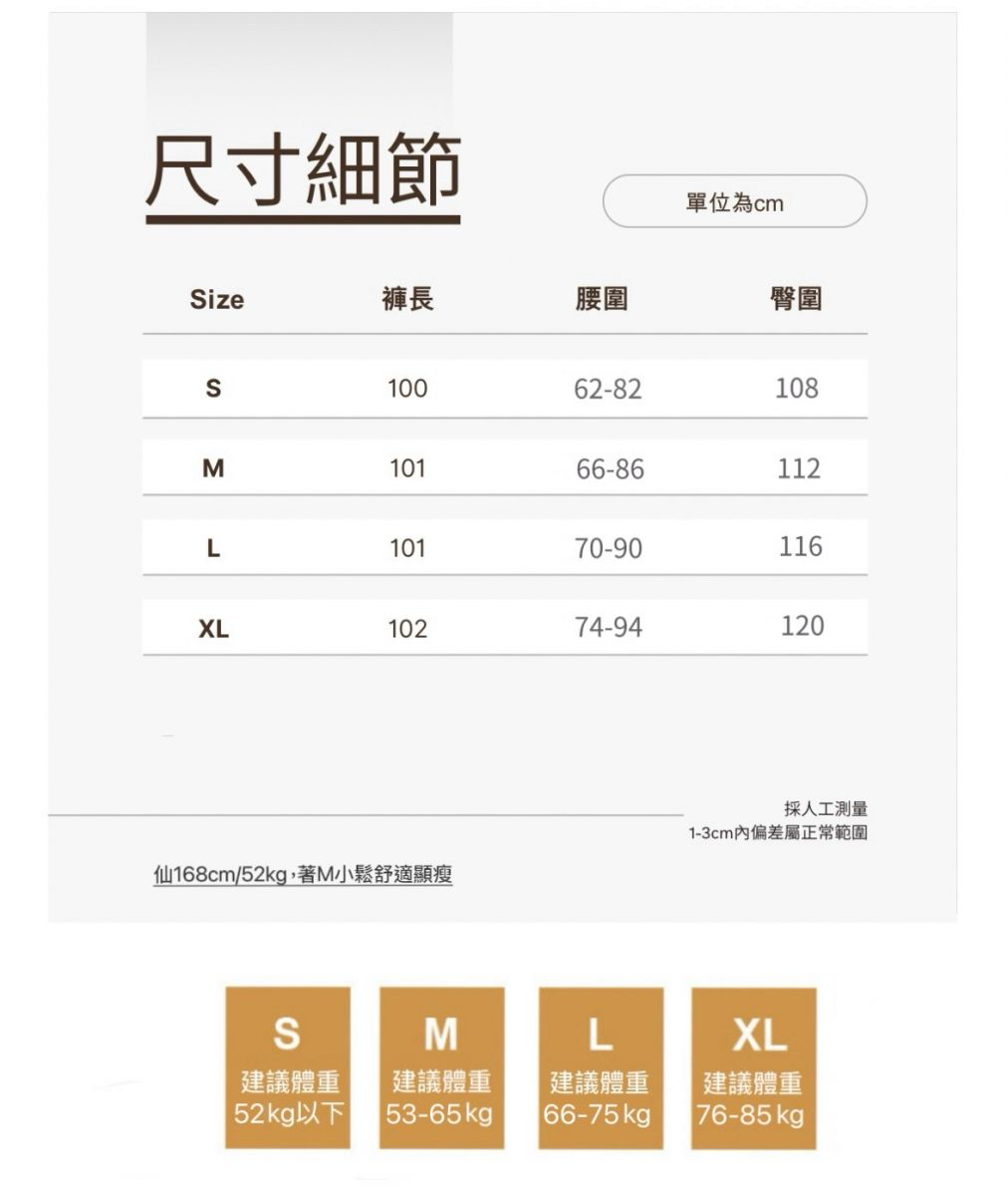 腰圍70~90cm/ 臀圍116cm/ 褲長101cm (建議體重66-75kg)