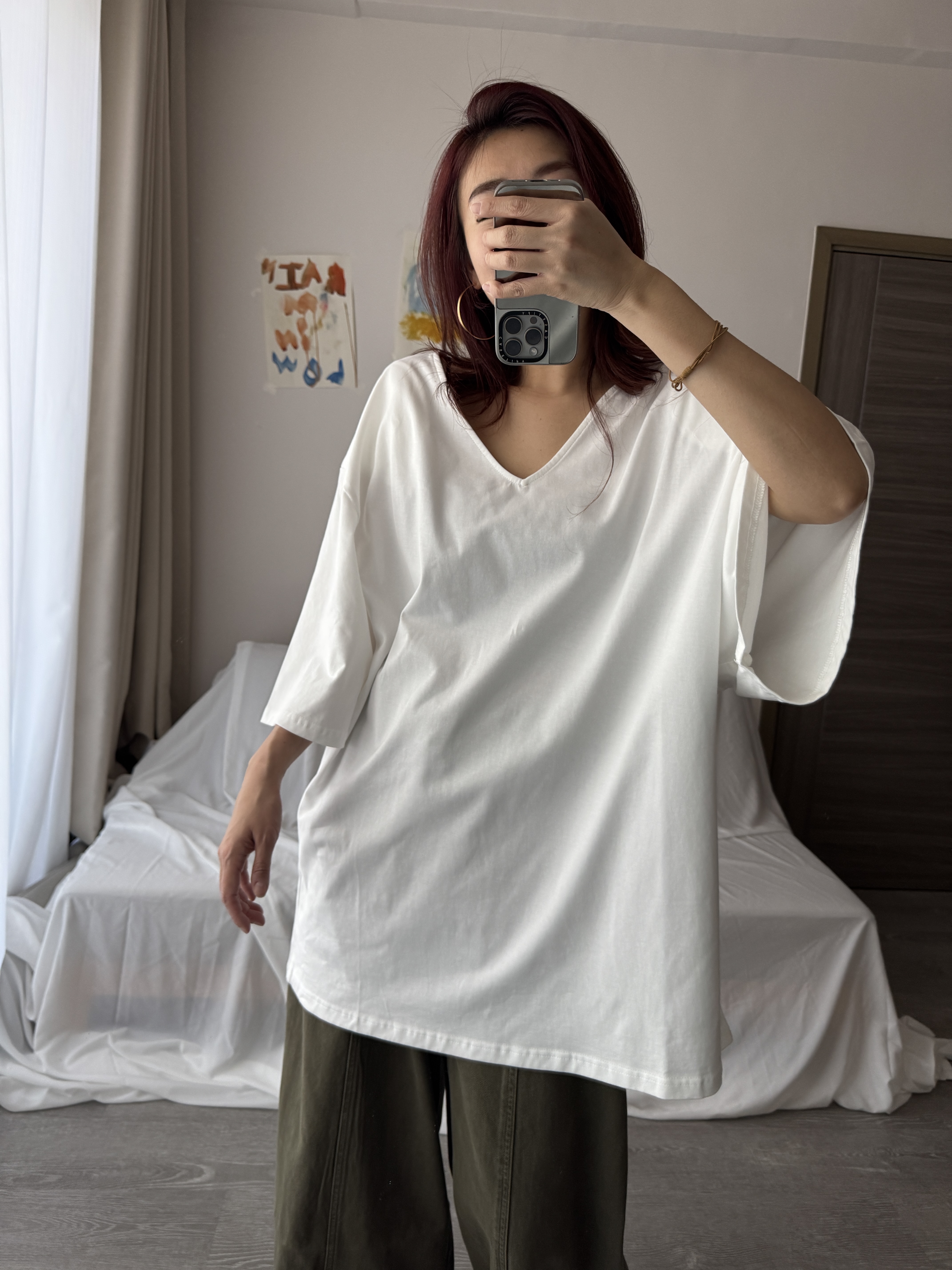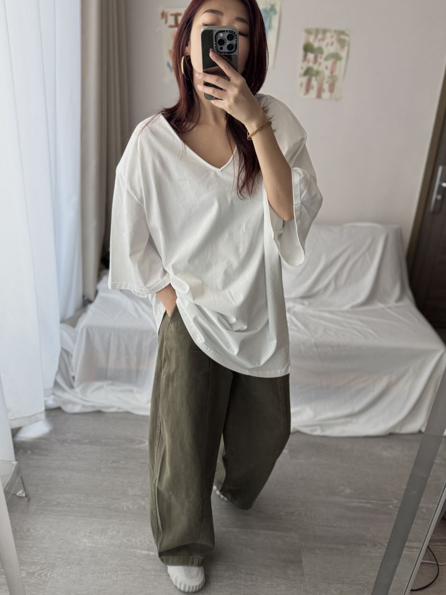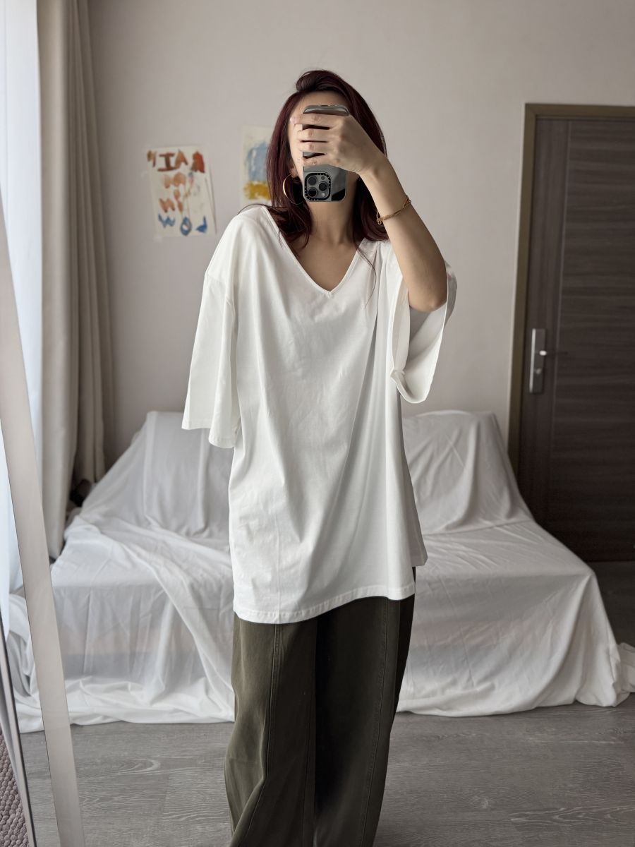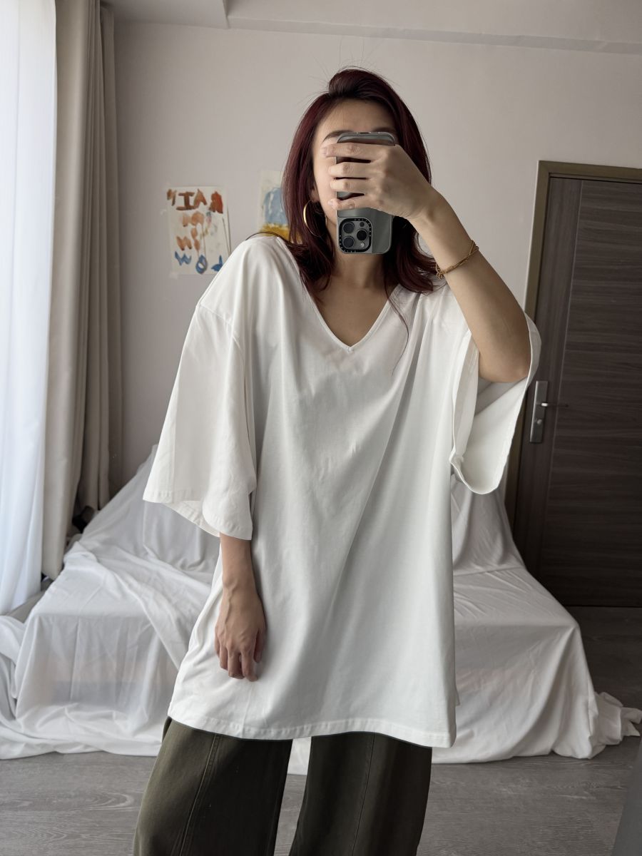 大V領墊肩Oversized上衣 (白)