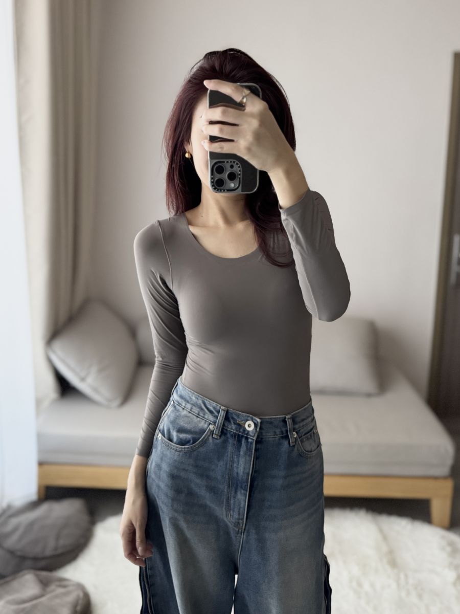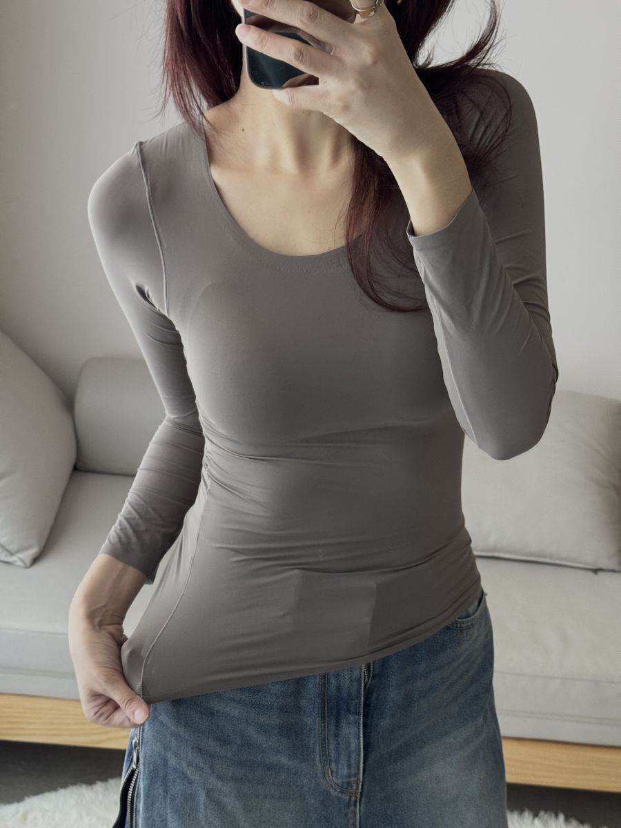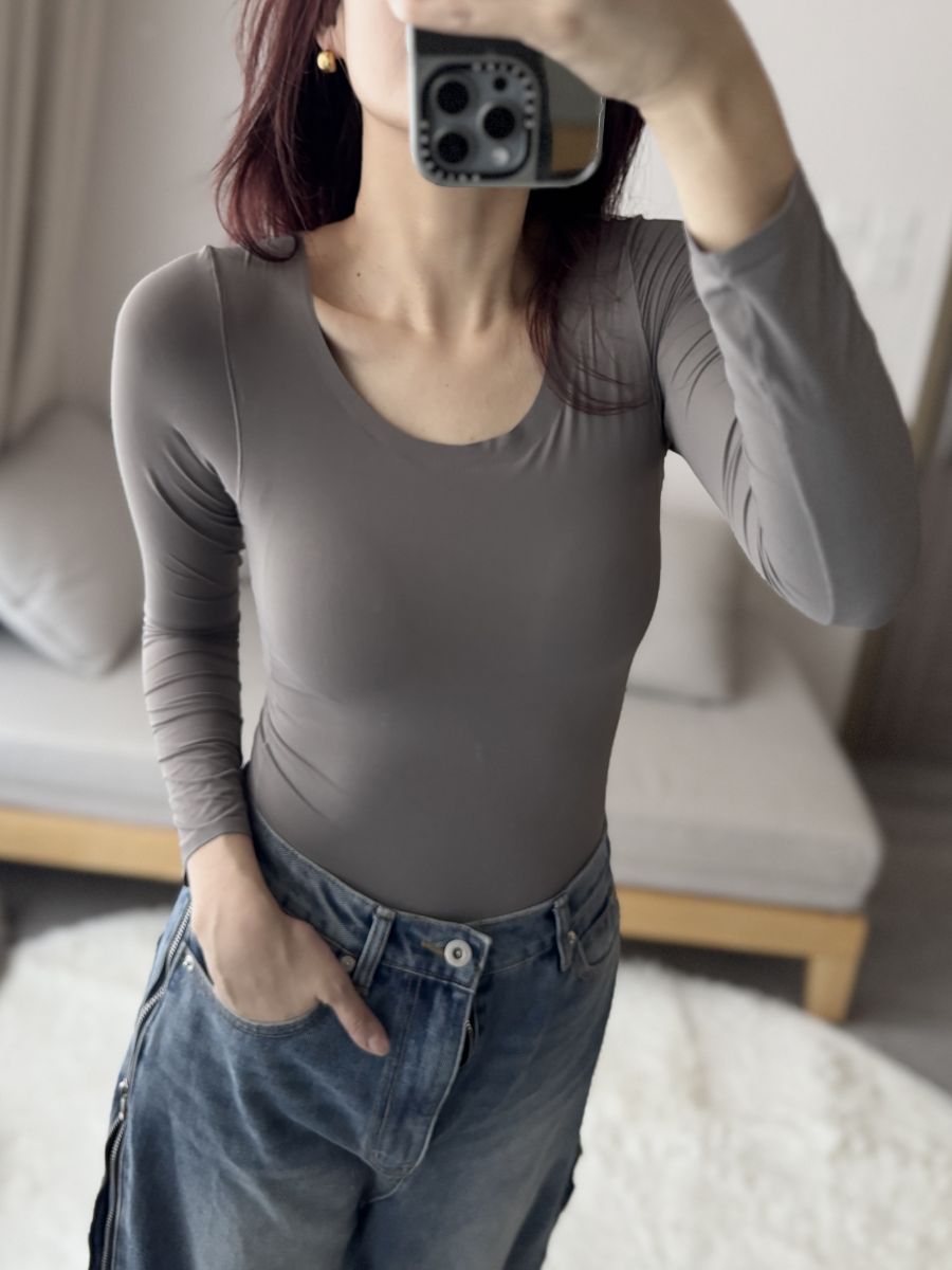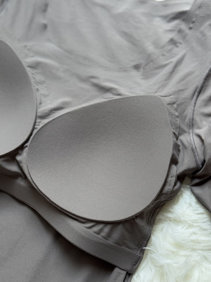 帶胸墊!超薄無痕美膚發熱衣 (灰) M-XL