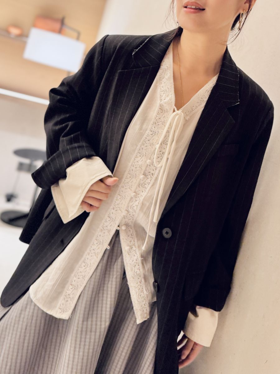 肩寬45cm/ 胸圍124cm/ 袖長58cm(不含可拆式襯衫袖)/ 衣長74cm