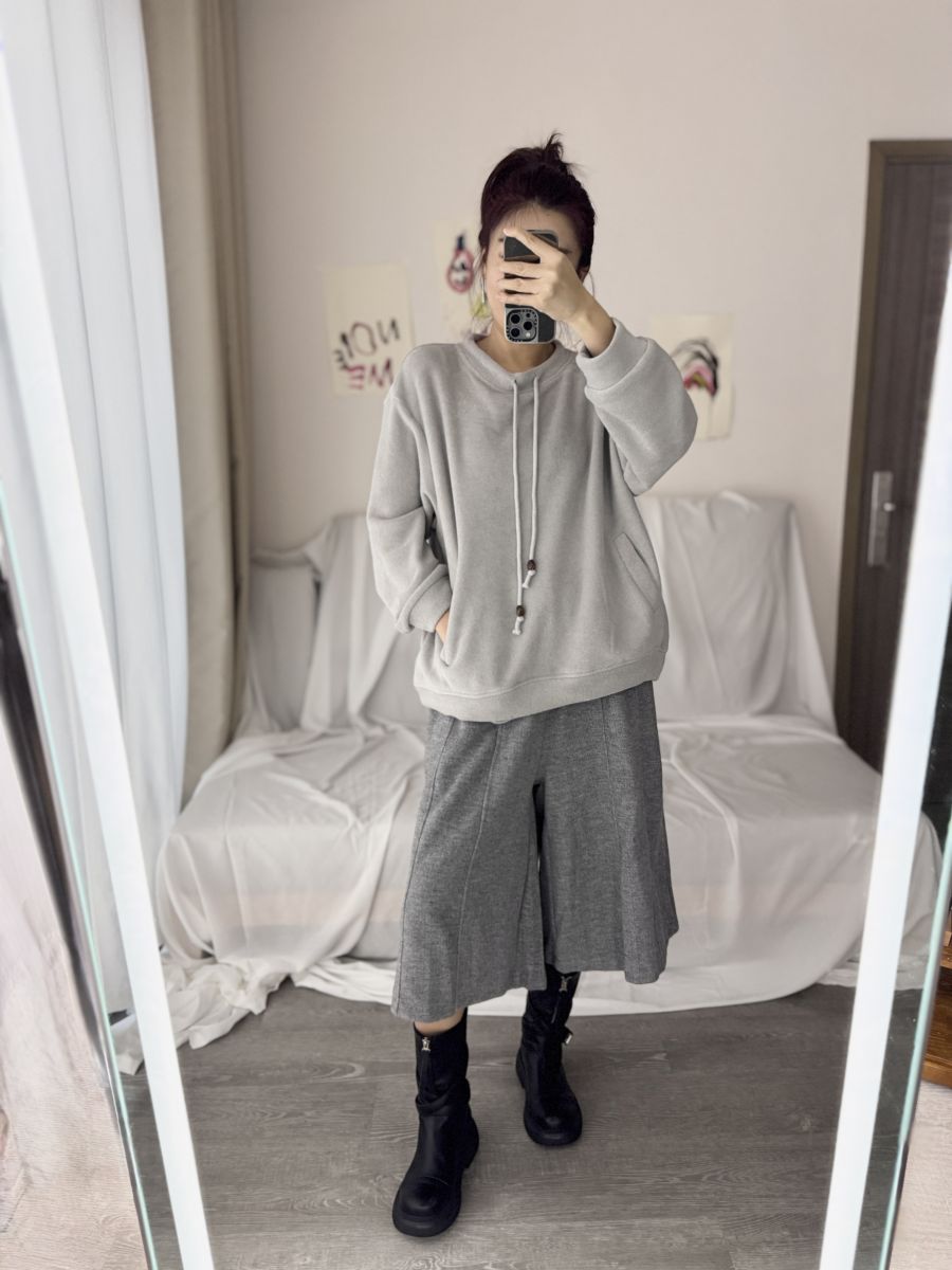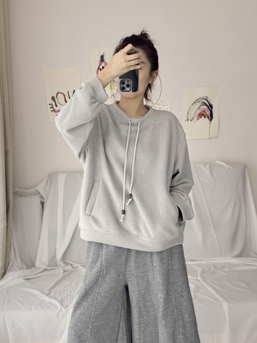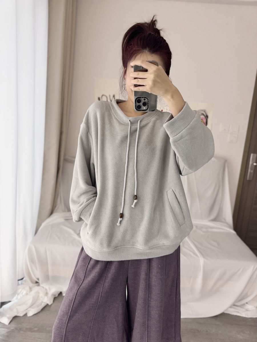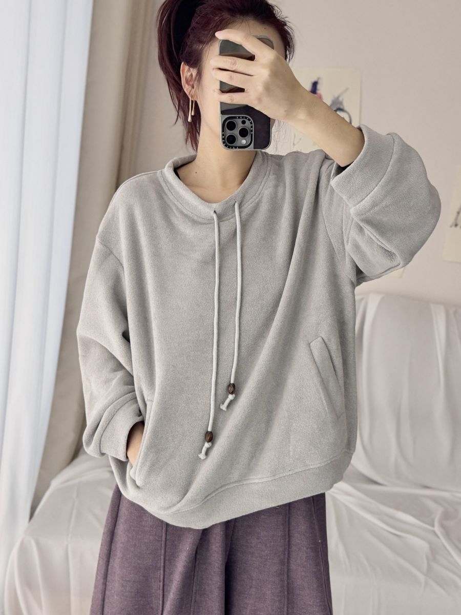 敲Q圈圈棉抽繩口袋上衣 (灰色)