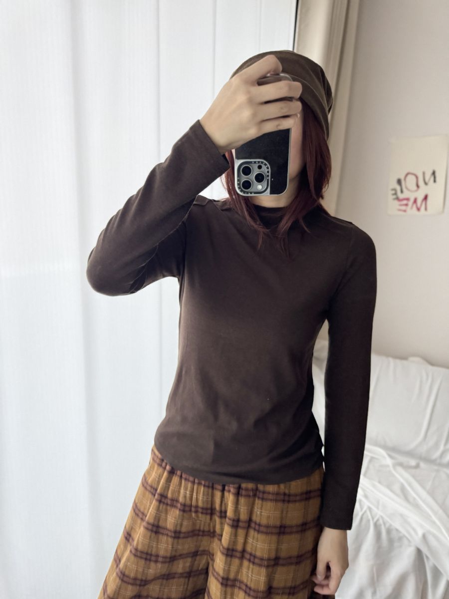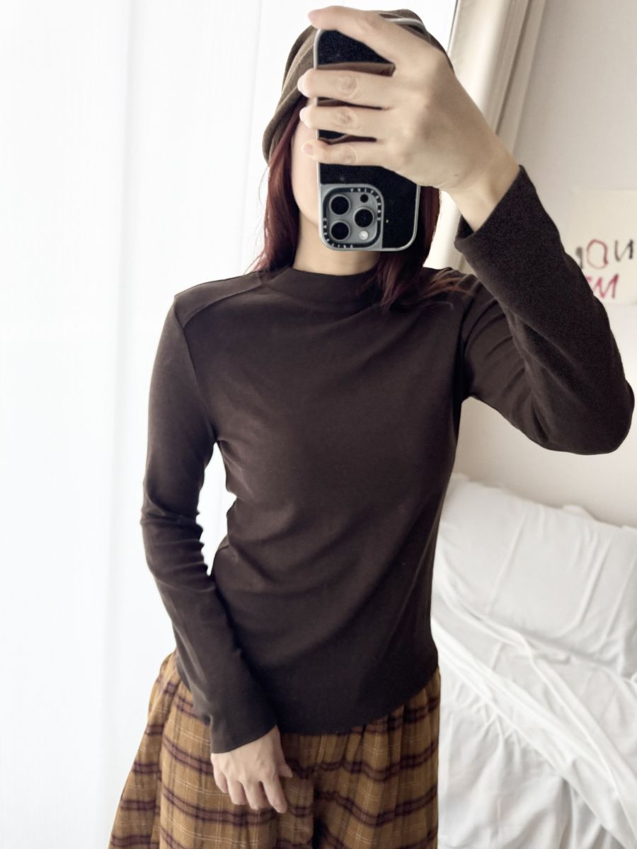 小高領超彈力慕斯暖絨內搭上衣 (咖) L-XXL