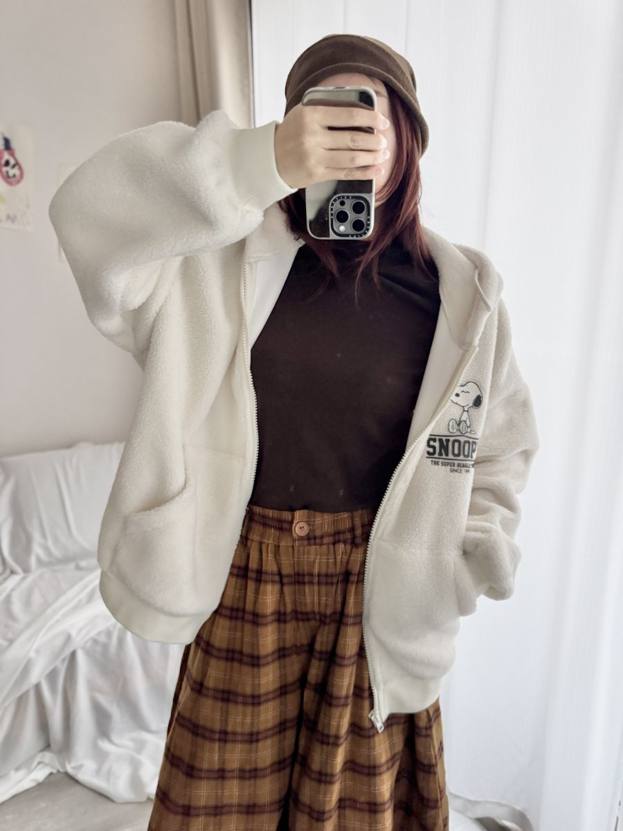 • 有口袋!賴床的人刷絨寬鬆男友Tee (黑) NT.$1280