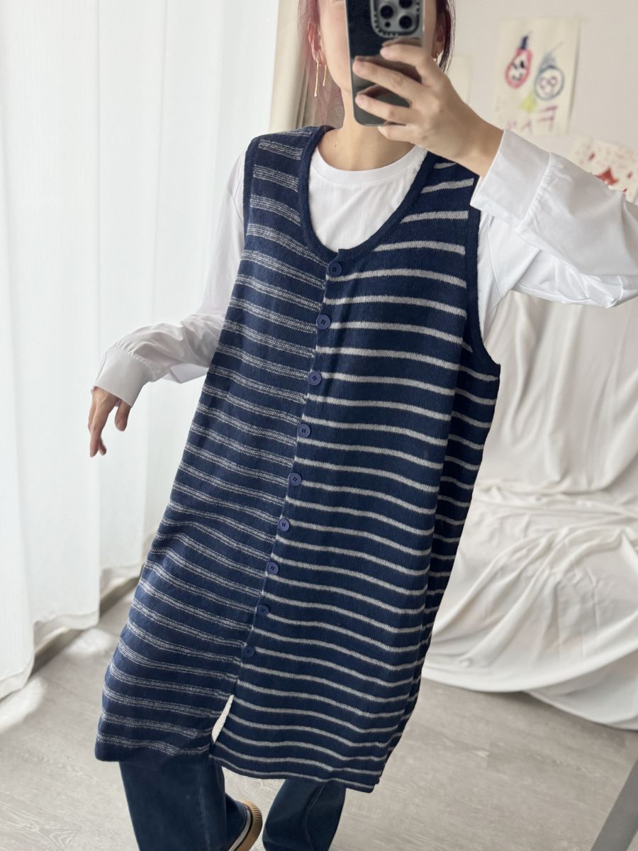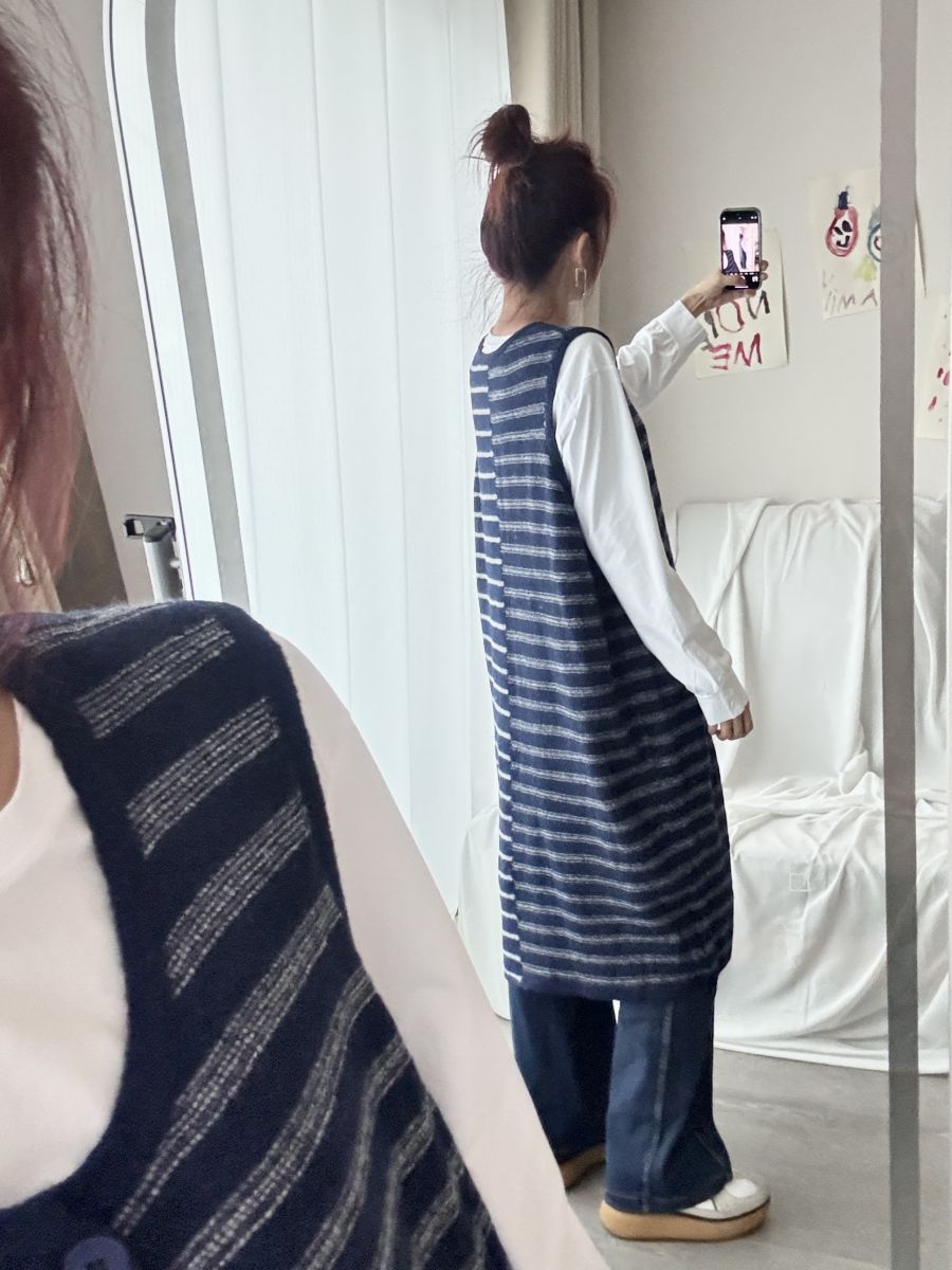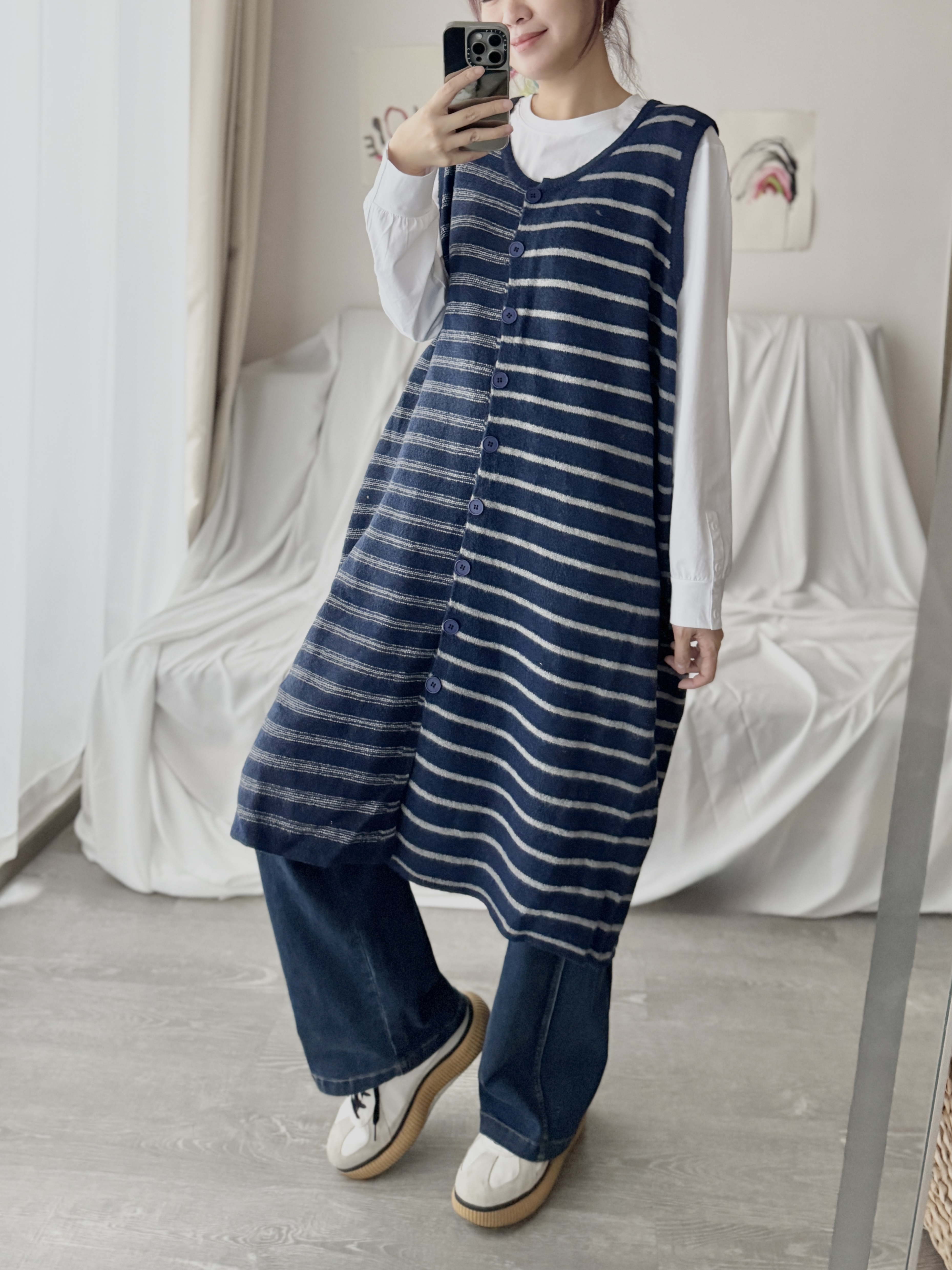 • 不對稱條紋排釦針織長背心 (黃) NT.$1080