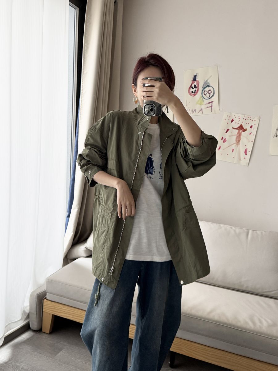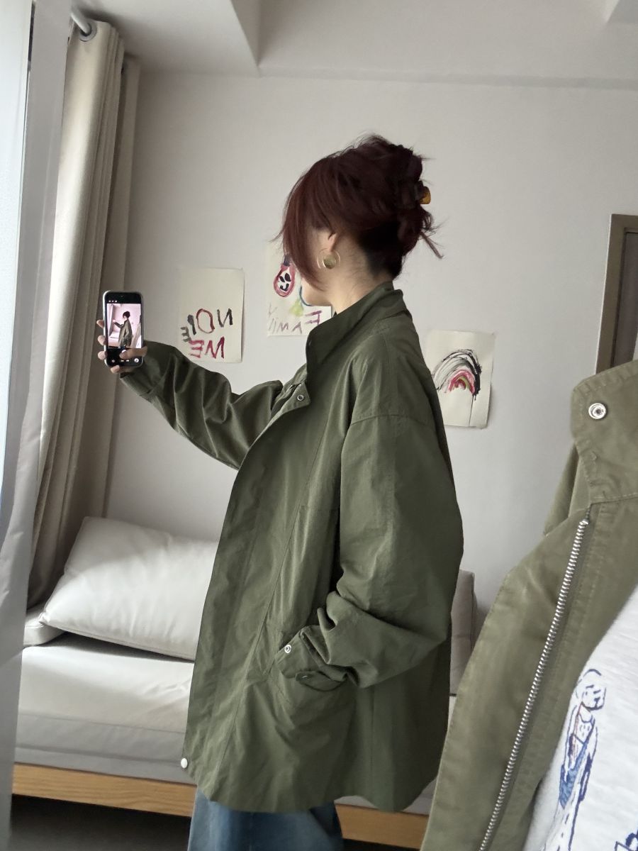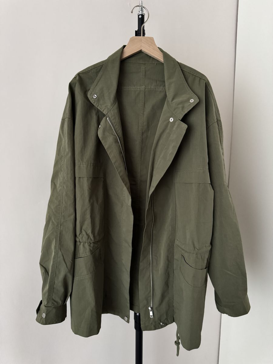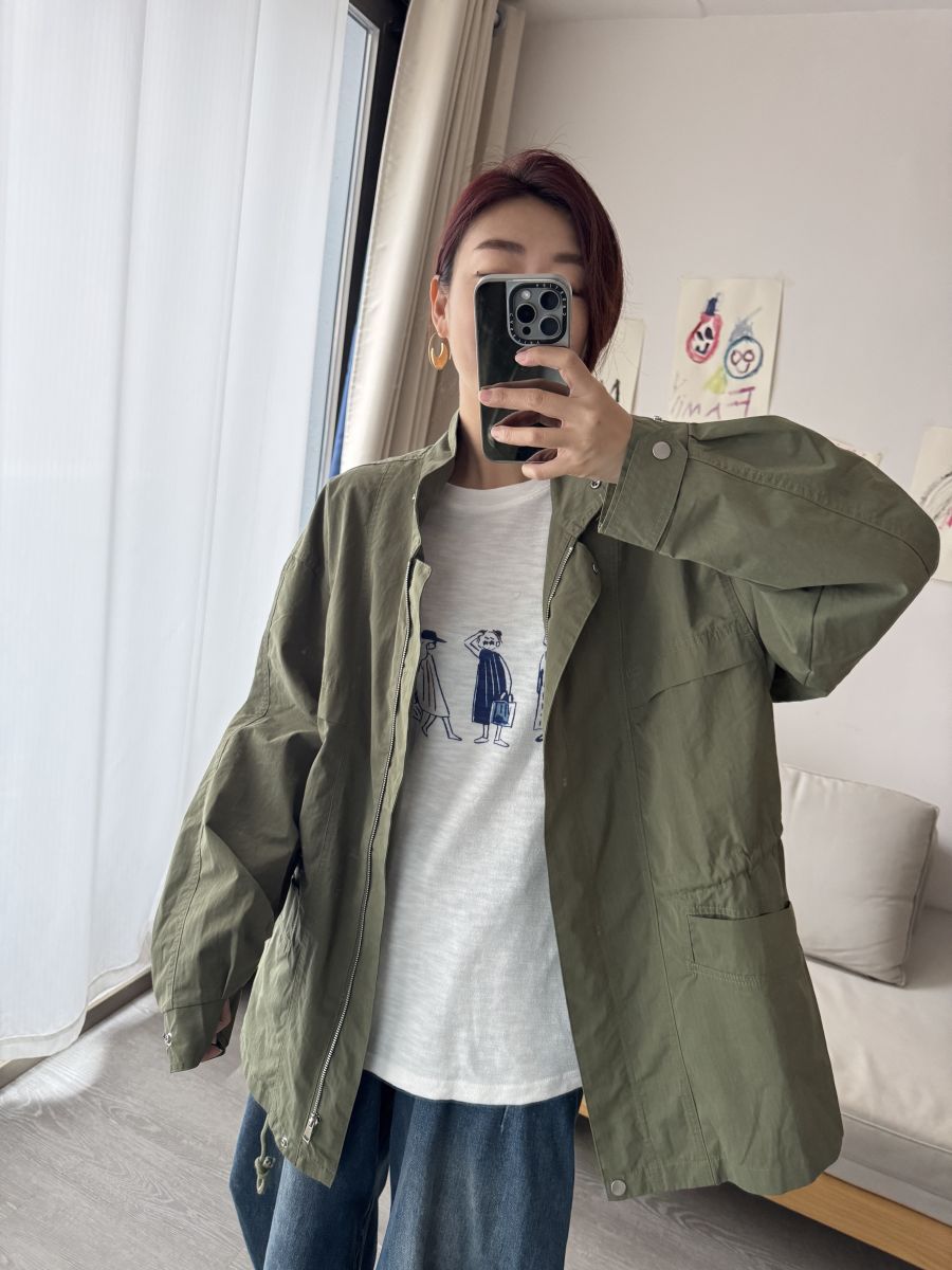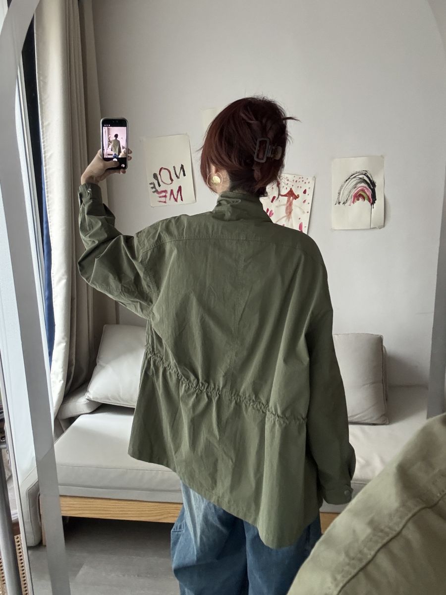 身為Y2K活化石要來喚醒一下大家的記憶,不是都流行露肚臍緊身衣的啦,嘉禾電影(?)跟緯來日本台(?)帶大的我們才會知道,港影日劇都風靡一時的狩獵外套,這件的版型最厲害的是顯瘦,妳看側面背面都紙片得要命,完美復刻就是要瘦的千禧審美。