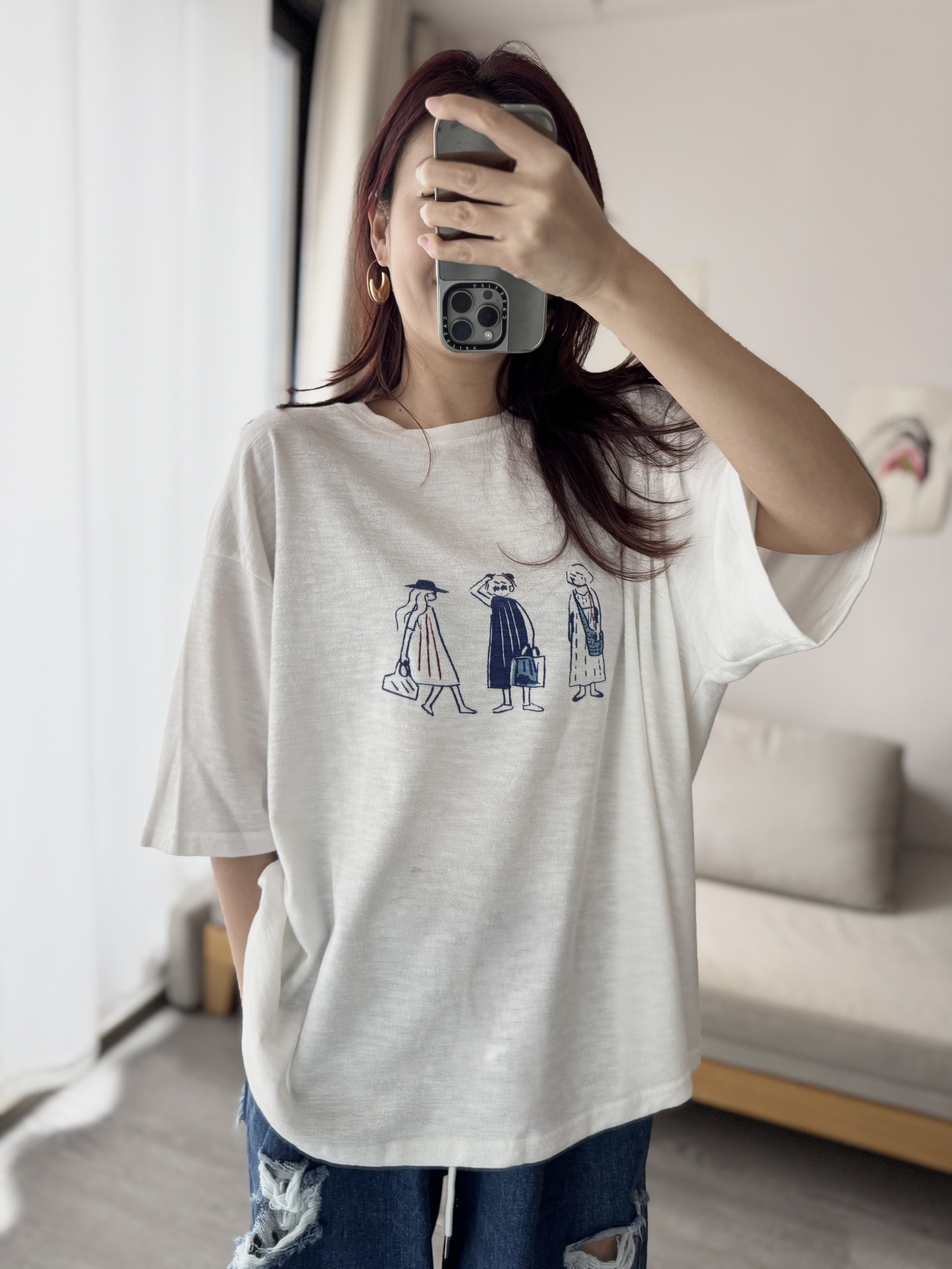• 女孩上街插畫彈力竹節針織上衣 (灰) NT.$780