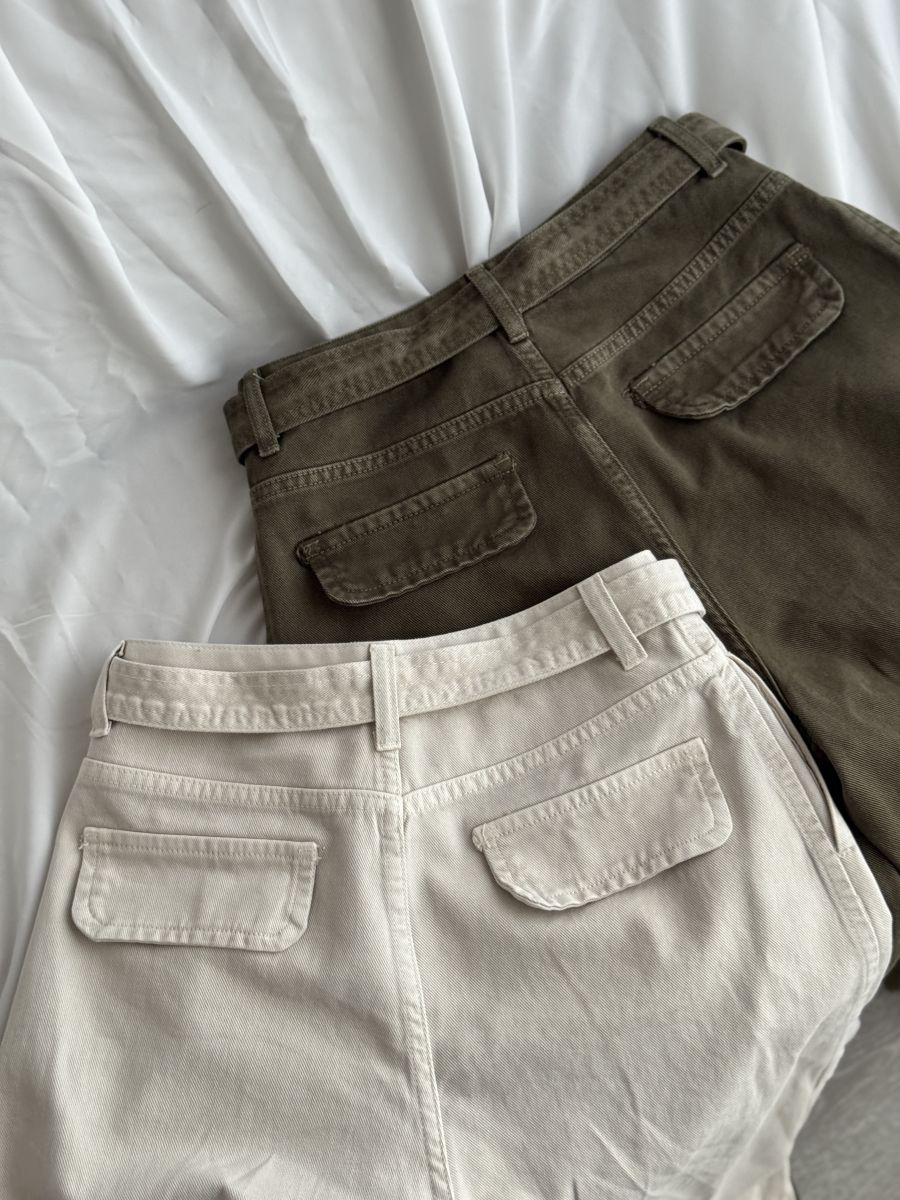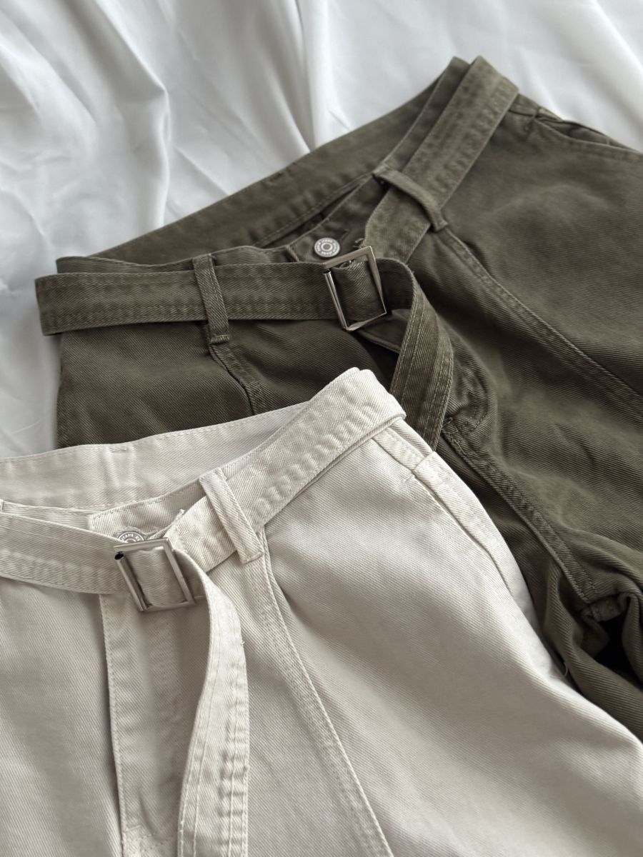• 附腰帶!高質感做舊水洗闊腿褲 (米白) S-XL NT.$1680