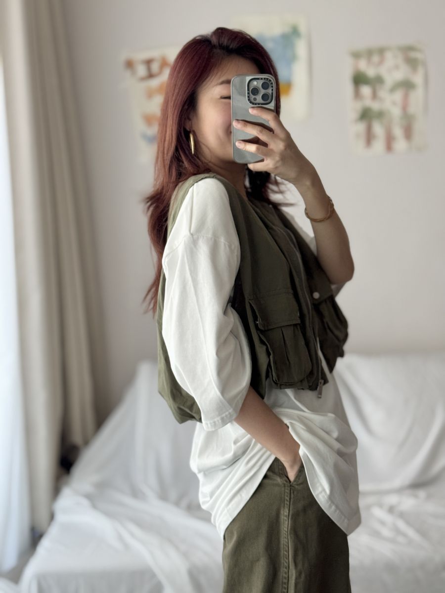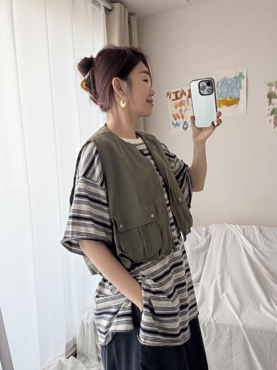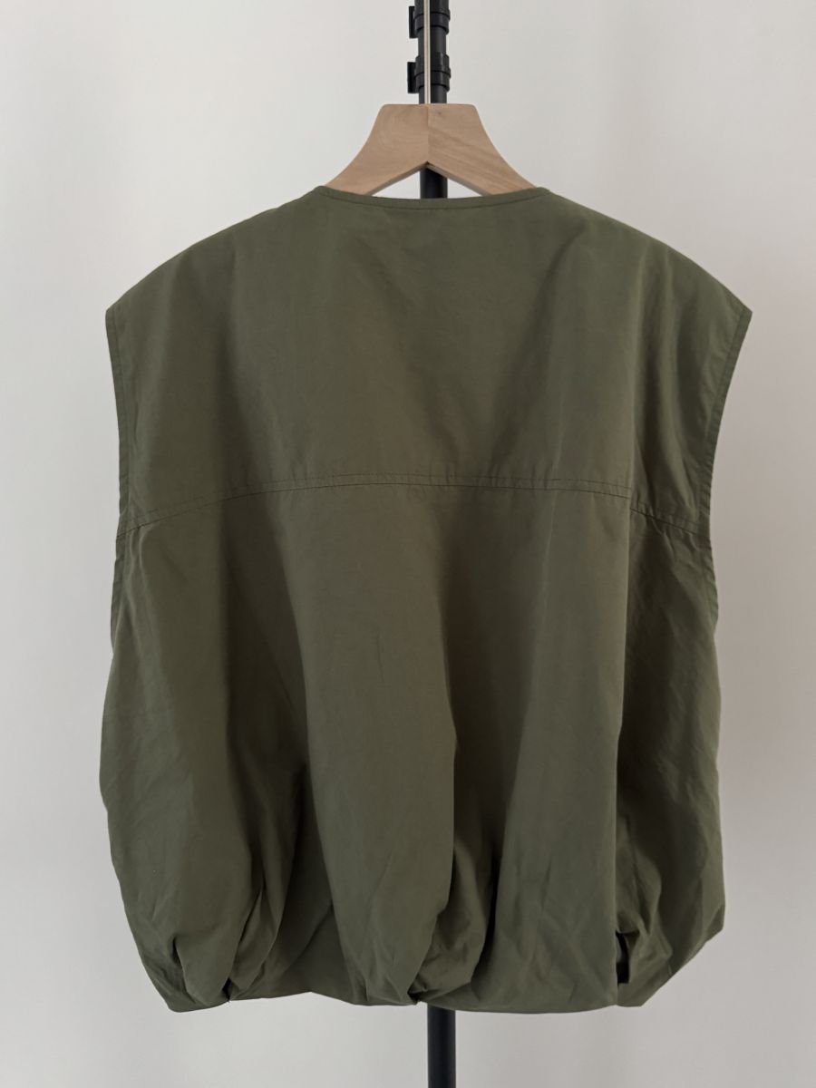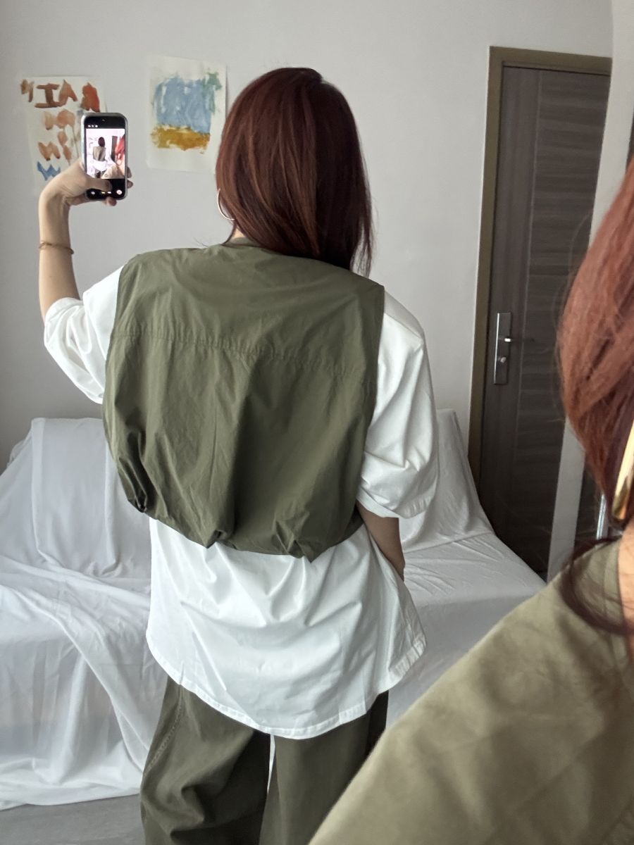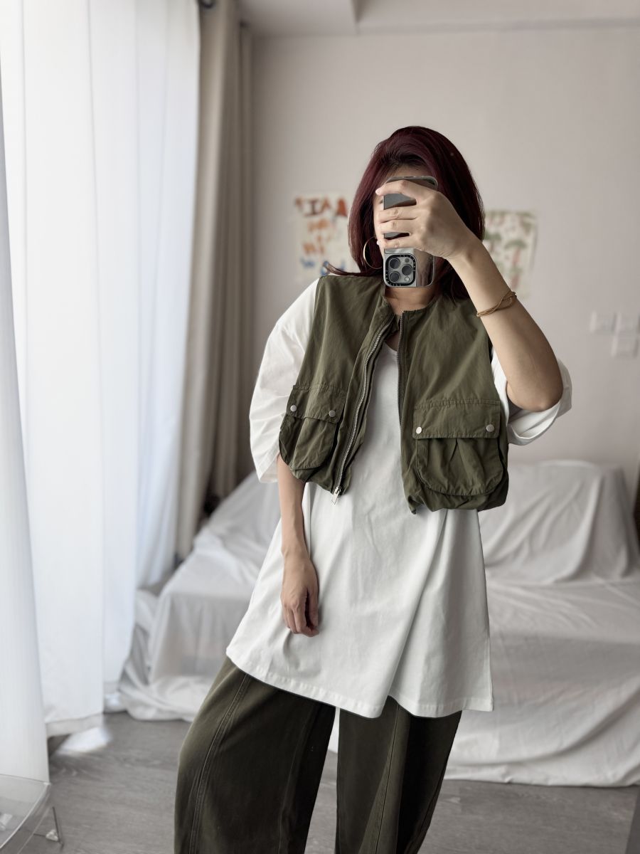立體口袋拉鍊短版背心 (軍綠)