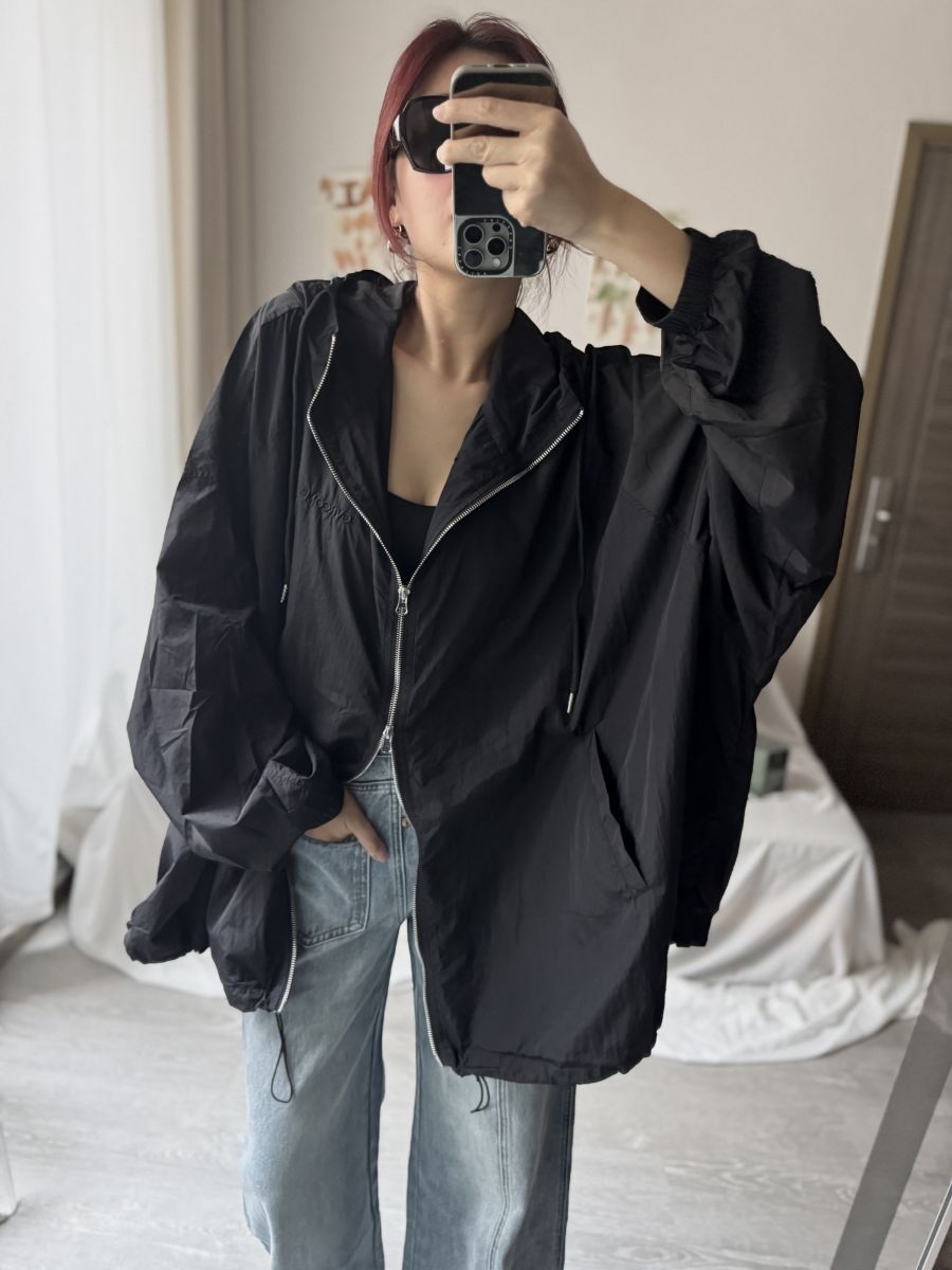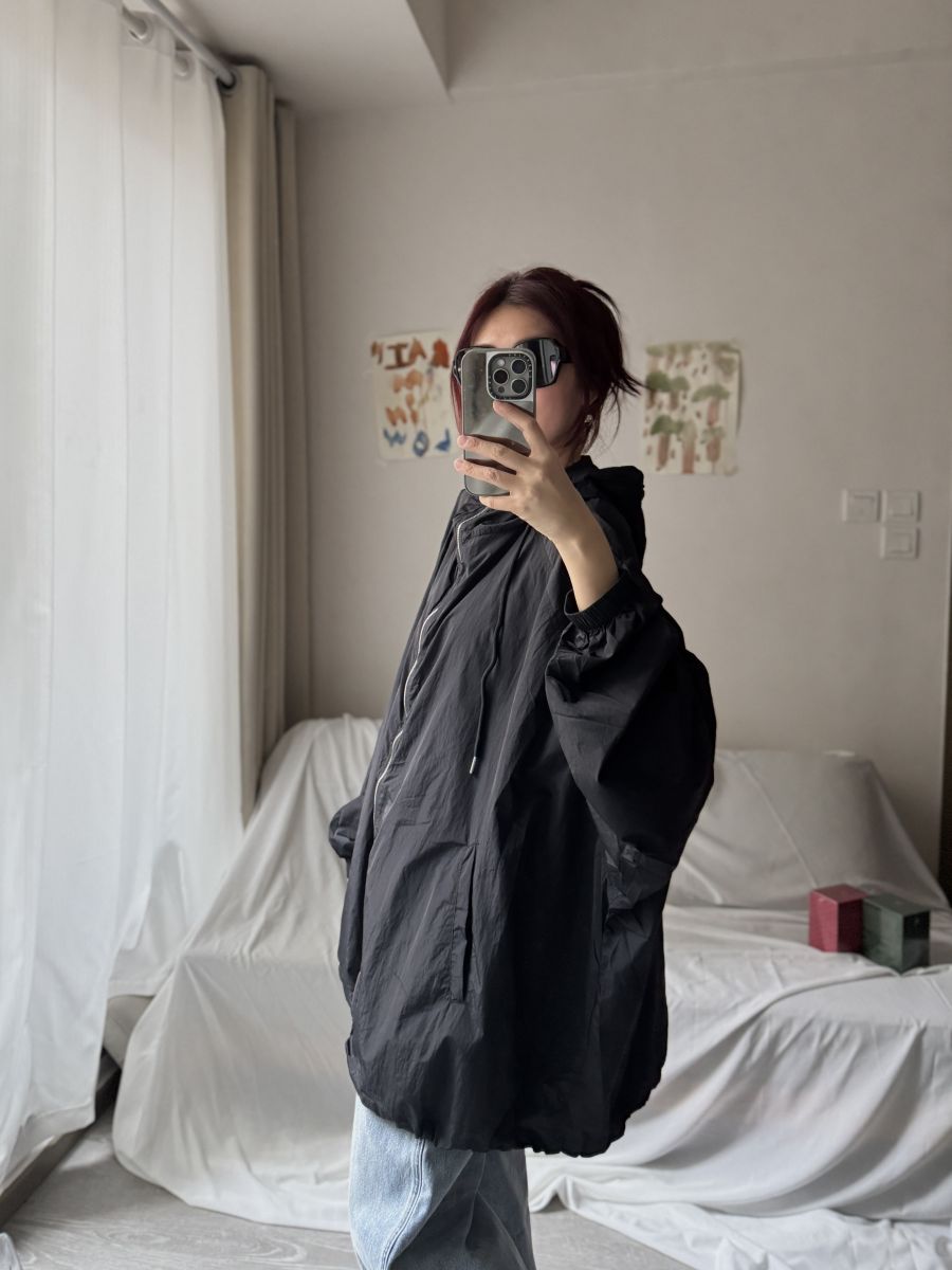 • 涼感防曬oversized抽繩外套 (白) NT.$1380