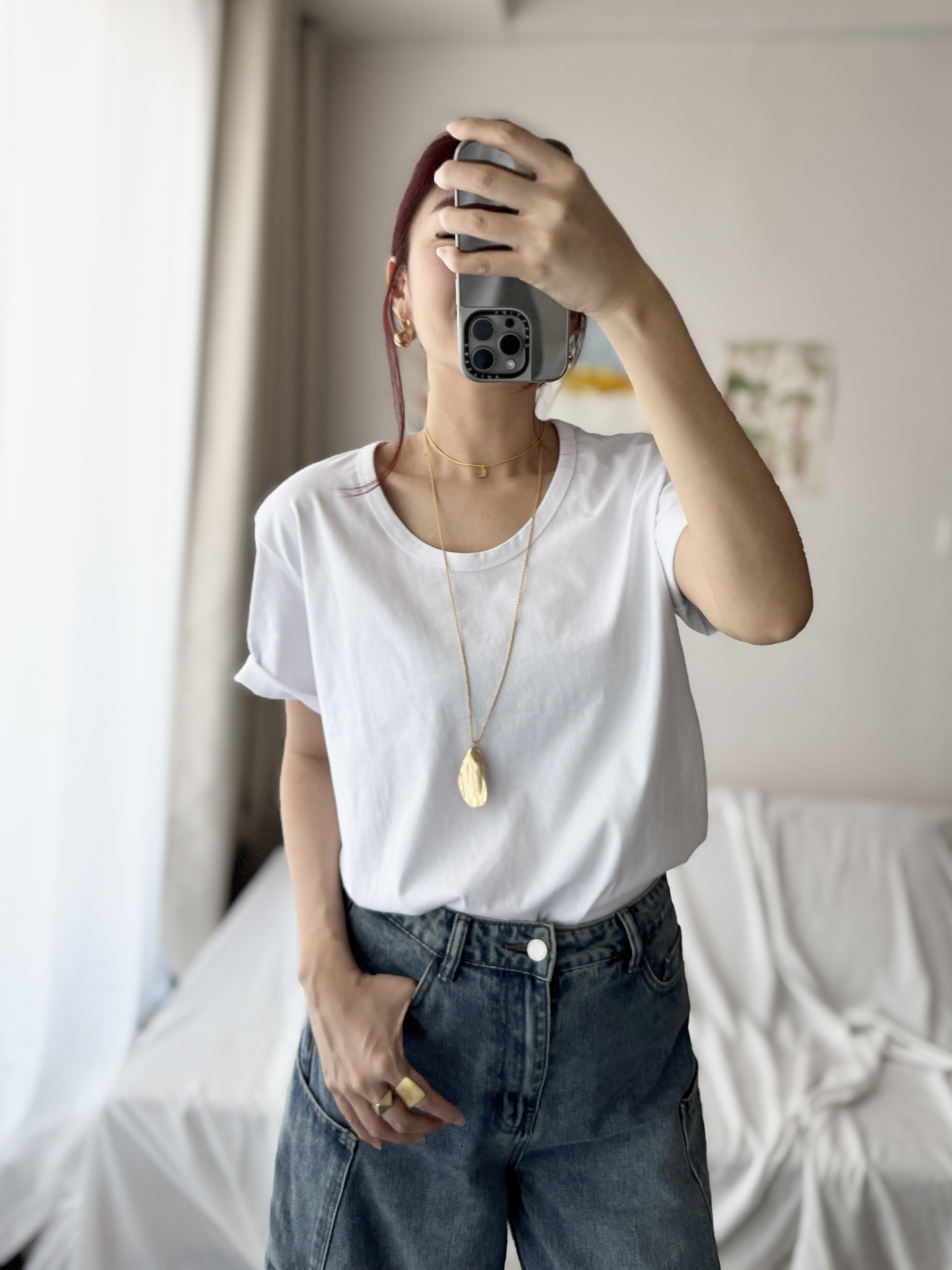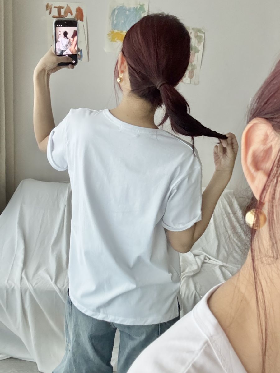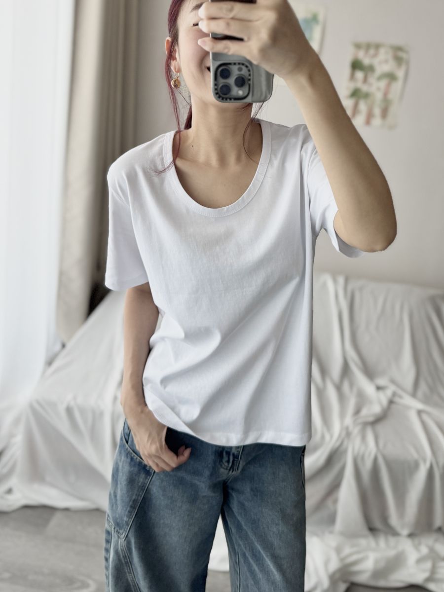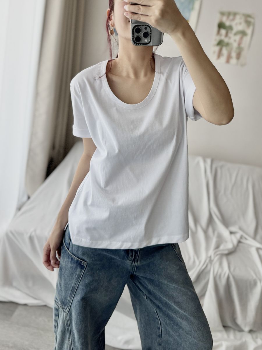 蕭顯瘦!鵝蛋領水洗純棉短袖Tee (白)